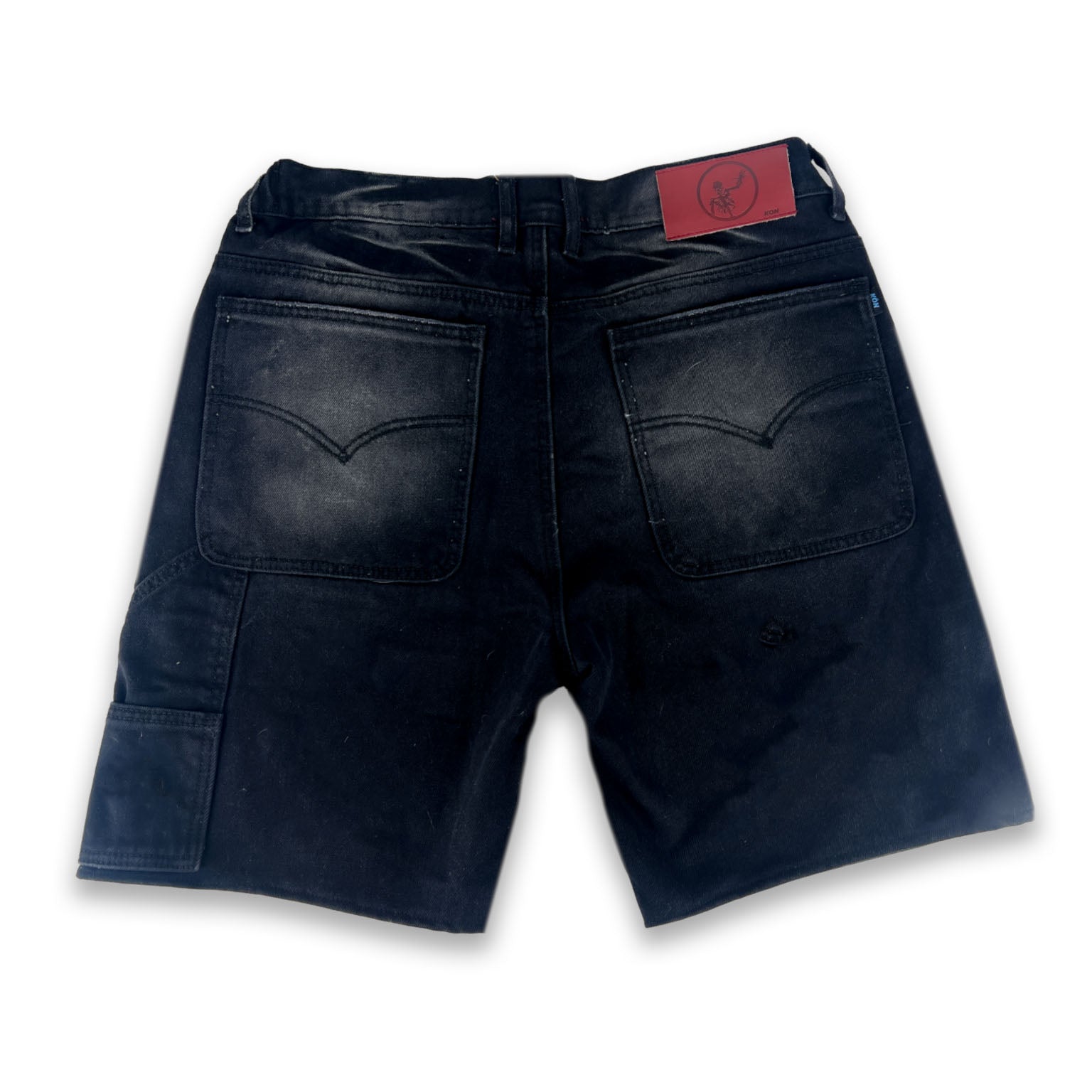 Reworking our classic black flannel denim into shorts for the fall, for those who love a hoodie with shorts combo. A vintage wash with reliable construction, featuring a relaxed fit, lined with soft flannel through out the legs. Crafted from 100% cotton denim, accented with custom gold button and rivets accent each pair, along with a blood red leather patch and interior label.
