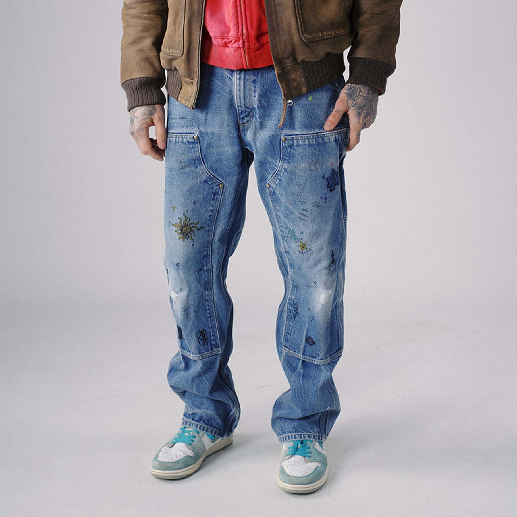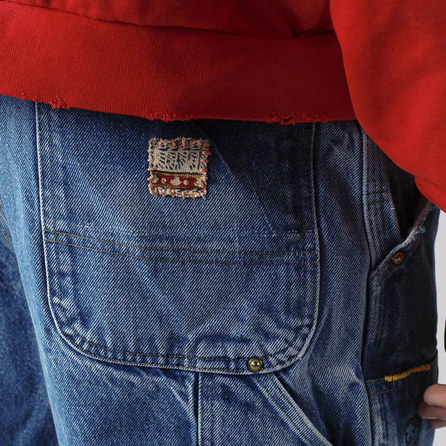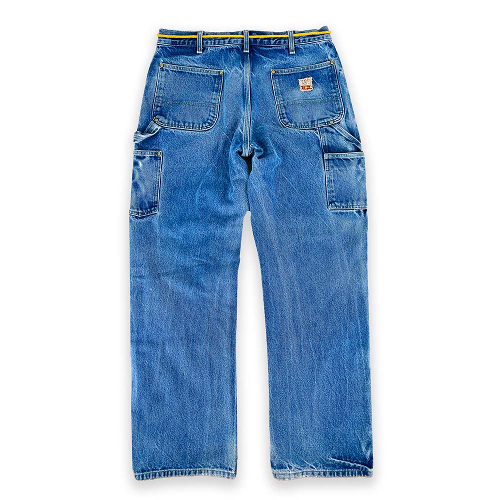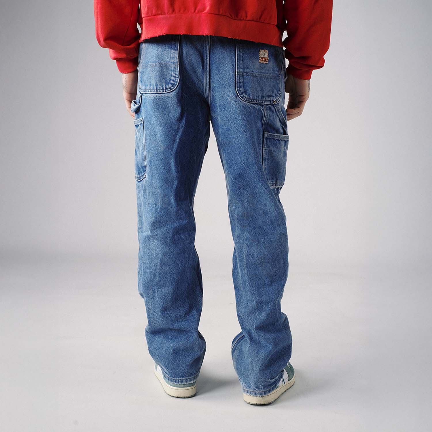 -Carpenter Style Construction w/ 6 pockets: 2 front, 1 coin pocket, 2 back, 2 side pockets.